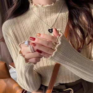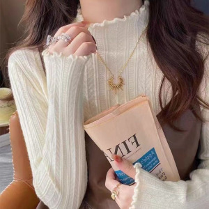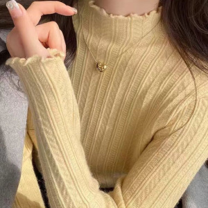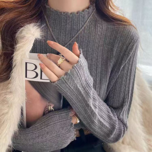 洋气黑色半高领长袖针织打底衫女新款春秋装氛围感内搭薄款毛衣女