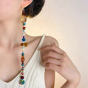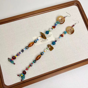 民族风美拉德混色串珠耳环长款天然石藏族风耳饰旅游度假风配饰品