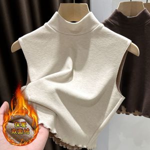 加绒加厚无袖背心女秋冬季德绒半高领显瘦内搭保暖t恤打底衫上衣