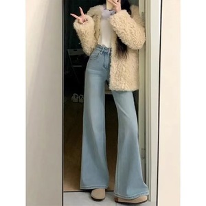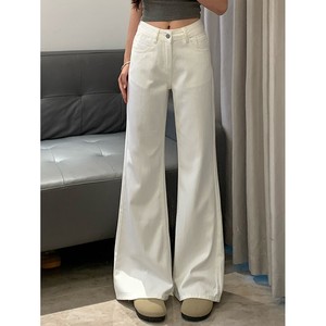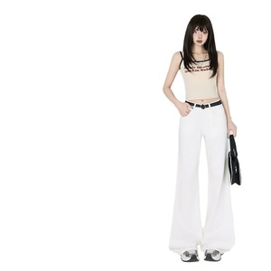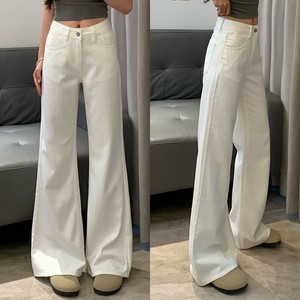 跨境余一一棉质竹节纹黑科技三防耐脏白色牛仔裤女宽松显瘦原牛喇