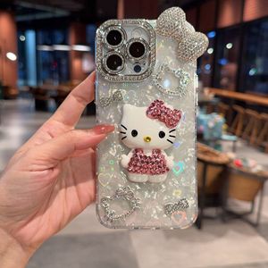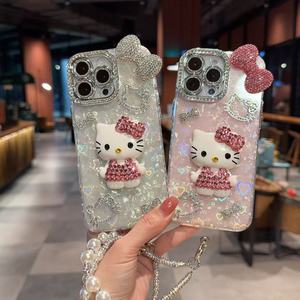贝壳纹适用苹果17promax闪钻13pro立体kt猫iPhone15/16pro手机壳