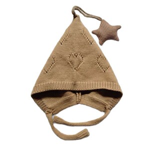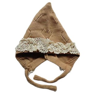 婴幼儿帽子秋冬季毛线帽薄女宝宝公主花边小月龄针织护耳帽精灵帽