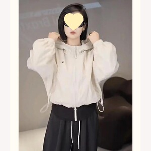 短外套女小个子2025秋季新款连帽百搭宽松下摆抽绳潮休闲