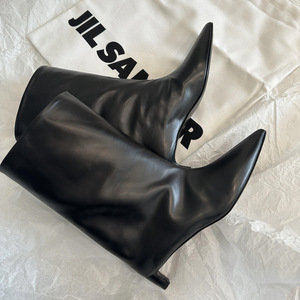 羊皮版~洋气真皮尖头高跟中筒靴女法式宽筒小踝靴骑士短靴马丁靴