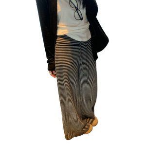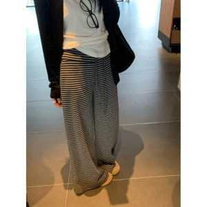 CHAO级推荐!条纹休闲裤女2025秋季爆款百搭显瘦松紧腰直筒阔腿裤