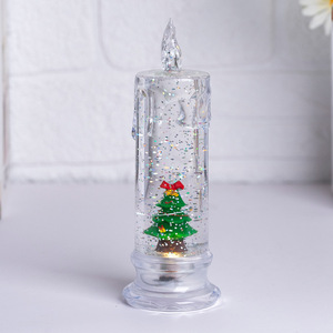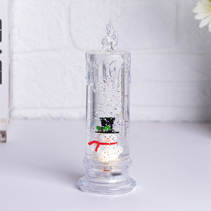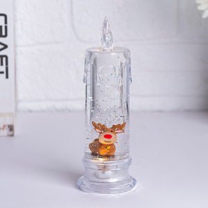 LED水晶透明注水电子蜡烛灯圣诞节飘雪夜灯仿真烛台节日氛围装饰