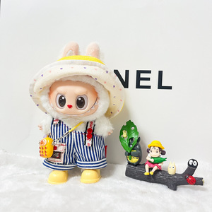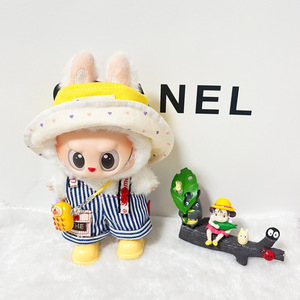 现货17cm拉布布衣服 帽子背带裤学院套装 棉花娃娃挂件labubu娃衣
