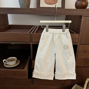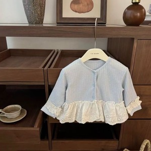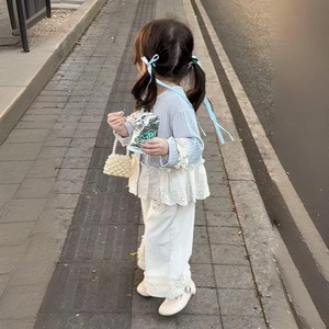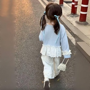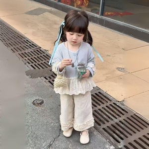 洋气女童2025套装春秋新款儿童拼接森系开衫花边休闲阔腿裤两件套