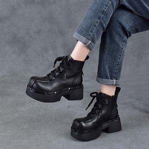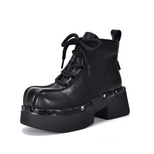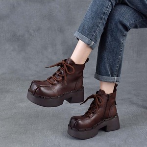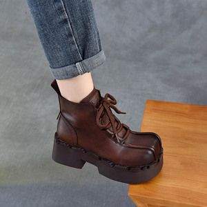 以一秋冬新款松糕厚底小个子高跟女靴个性复古休闲短靴软底舒适靴