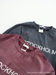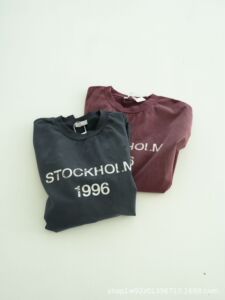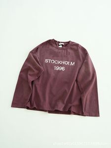早秋字母印花水洗做旧打底长袖男女同款宽松圆领休闲T恤时尚简约