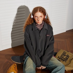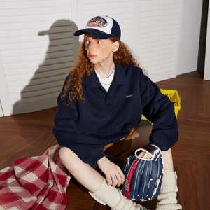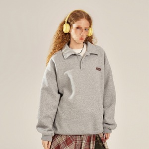 领简约休闲百搭卫衣秋美式长袖翻领宽松上衣潮