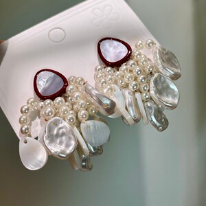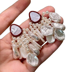 贝壳串珠耳坠波西米亚风彩贝珍珠流苏耳钉小众独特度假拍照耳环女