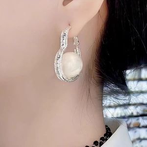 简约时尚珍珠爱心夸张耳环2025新款爆款耳扣925银针个性百搭耳圈