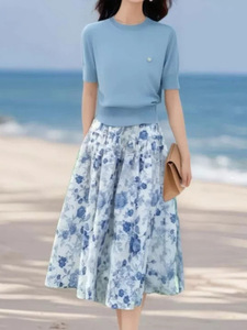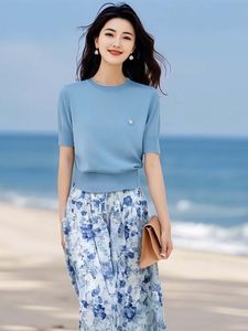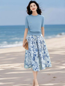 2025超火早秋穿搭一整套大方得体气质减龄短袖上衣半身裙两件套装