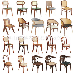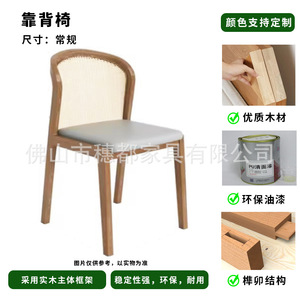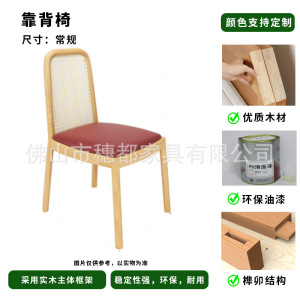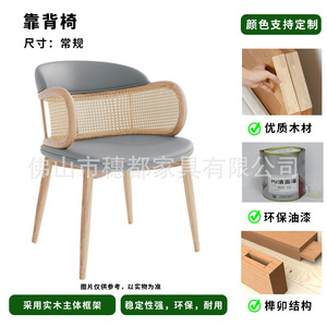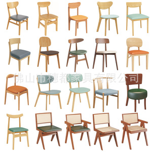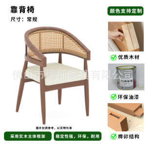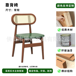 北欧实木简约网红西餐厅椅子藤编化妆椅酒店餐厅凳子靠背椅