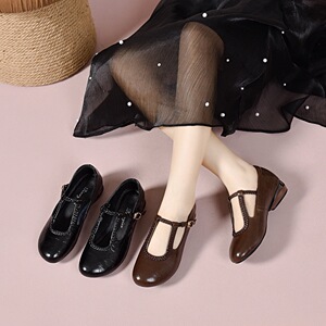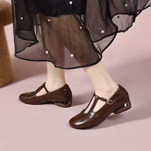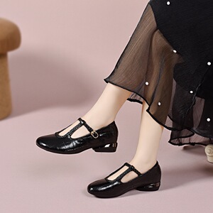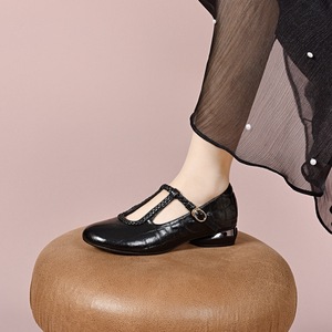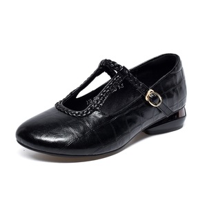 圆头软底编织皮鞋粗跟单鞋女鞋2025秋季中跟不掉跟真皮浅口乐福鞋