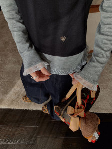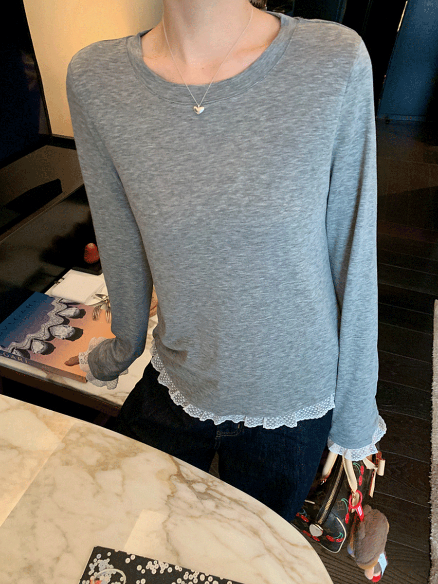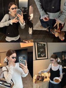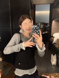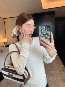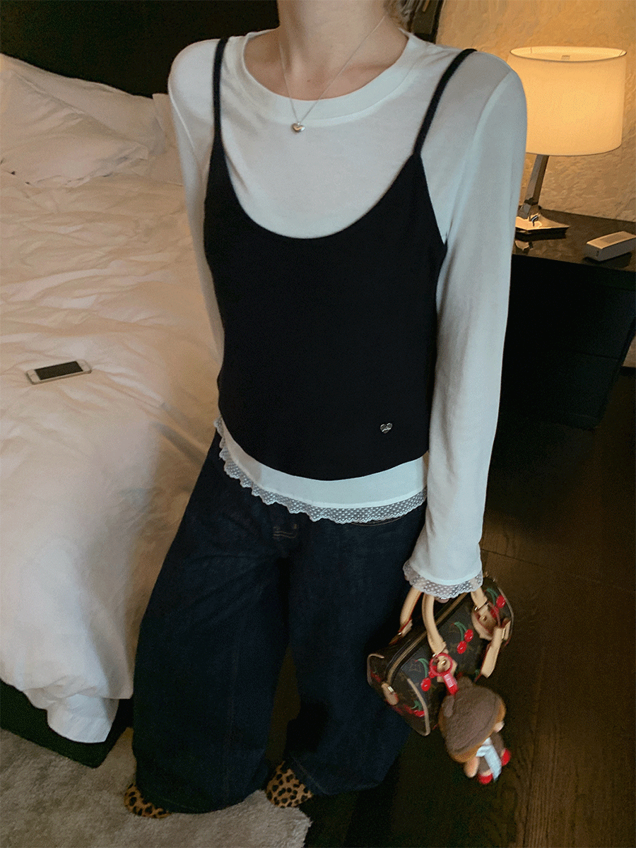 张贝贝ibel仿天丝蕾丝花边纯色长袖t恤细肩带简约吊带外搭女