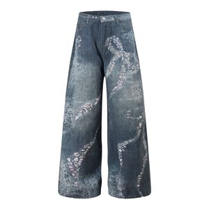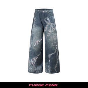 Fudge Pink 2025秋季New美式复古高品质洗水3D印花牛仔长裤