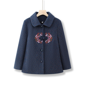中老年人秋装毛呢外套老太太冬装衣服女奶奶加绒呢子妈妈唐装上衣