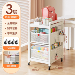 书包置物架家用多层桌下滑轮柜放书本零食收纳架可移动厨房小推车