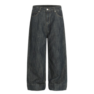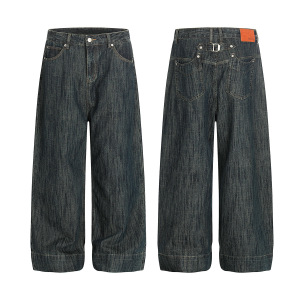 嘉衣库潮牌2025秋季新款美式复古竹节纹肌理感牛仔裤宽松阔腿长裤