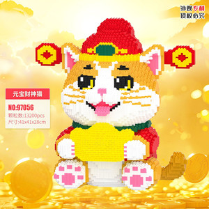 财神爷立体拼图品牌IP积木玩具益智儿童玩具拼装积木财神模型摆件
