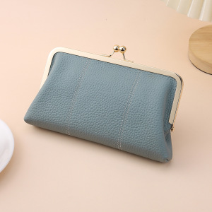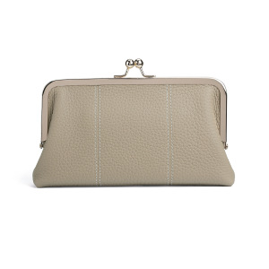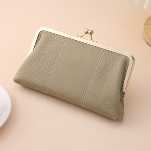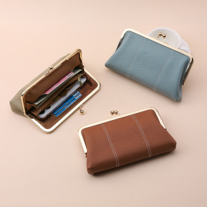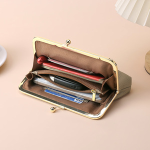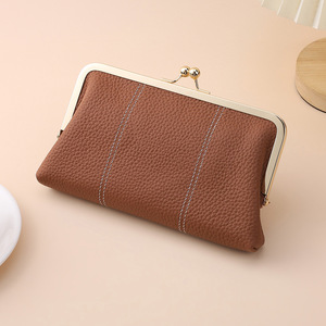 真皮晚宴包女士多功能口金夹子长款钱包女荔枝纹头层牛皮手拿包