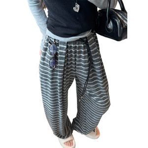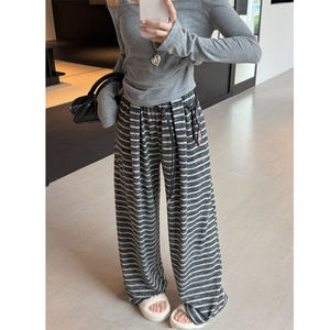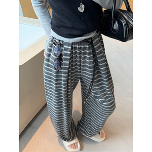 超火爆的秋日条纹裤休闲裤女2025新款松紧腰宽松高腰显瘦阔腿裤潮