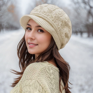 跨境新款羊绒针织帽子冬季中老年人保暖防寒毛线帽女士加绒鸭舌帽