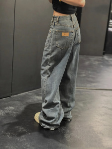 2025早秋新款MM前口袋复古水洗宽松休闲直筒牛仔裤长裤女