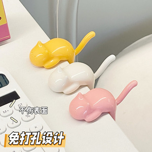 可爱猫咪桌边挂钩家用玄关洗漱台无痕免打孔粘钩强力承重免钉钩子
