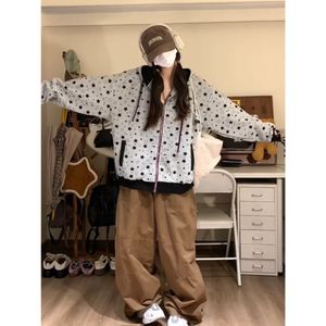 美式复古潮牌星星满印开衫连帽卫衣女春秋2025新款宽松慵懒风外套