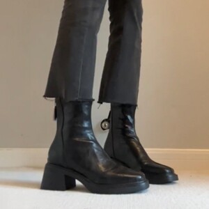 羊皮版~真皮黑色褶皱粗跟短靴女英伦风复古切尔西靴瘦瘦靴马丁靴