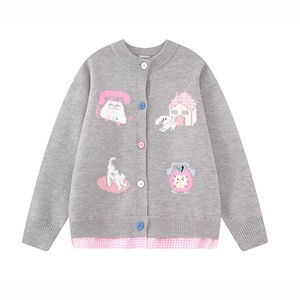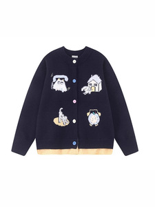 韩系复古国潮牌彩色纽扣趣味提花针织毛衣开衫宽松休闲设计感外套