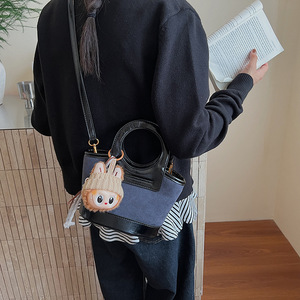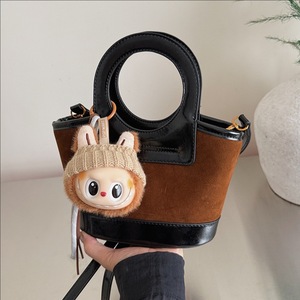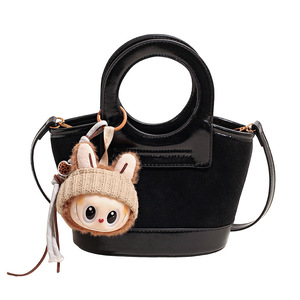 跨境韩系手提包拼接水桶包包女2025秋冬新款时尚单肩包通勤斜挎包