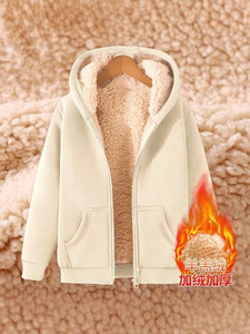 秋冬季羊羔绒外套重磅加绒加厚男士卫衣纯色上衣青少年连帽开衫男