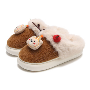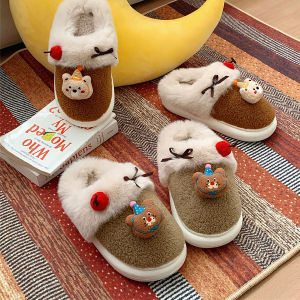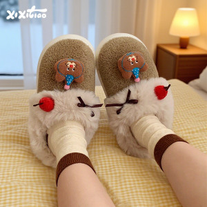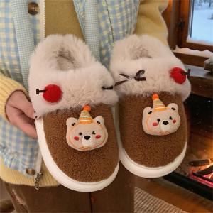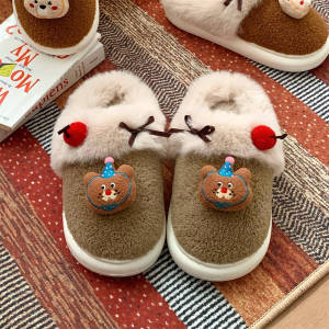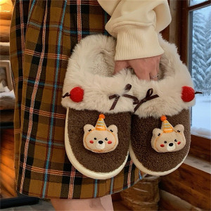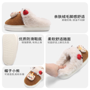 女冬可爱樱桃小熊月子鞋2025新款趣味卡通保暖棉拖鞋舒适毛毛拖鞋