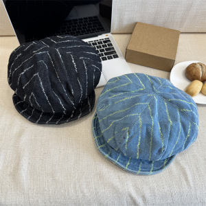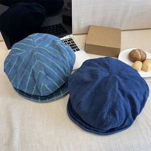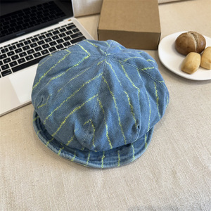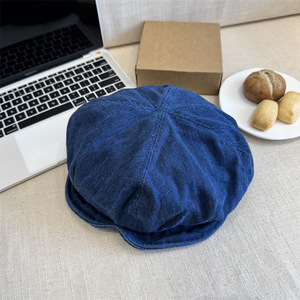 日系复古薄款牛仔帽女春夏大头围文艺鸭舌帽百搭贝雷帽压褶报童帽