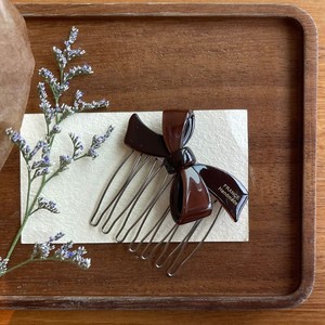 法式巧克力色蝴蝶结碎发梳韩国FRANCE金标倒插梳盘发侧边发插发钗