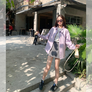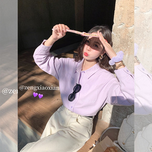 曾小咸 紫色衬衫外套女早春韩系穿搭牛仔衬衣外搭开衫长袖上衣服
