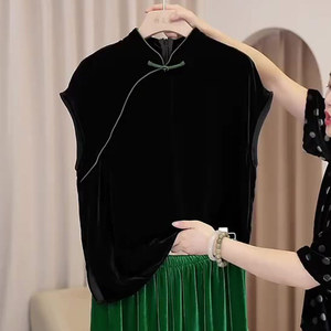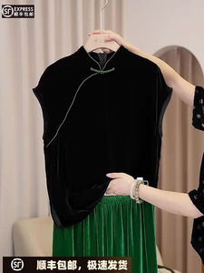 新中式国风复古盘扣黑色上衣女2025夏季薄款轻奢小众优雅小衫