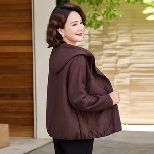 胖妈妈装连帽短外套宽松加肥大码中老年女装春秋洋气减龄夹克上衣