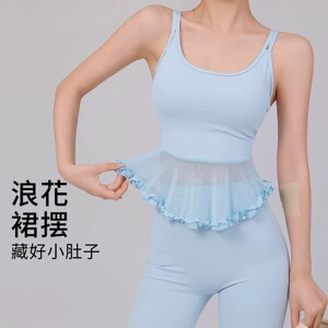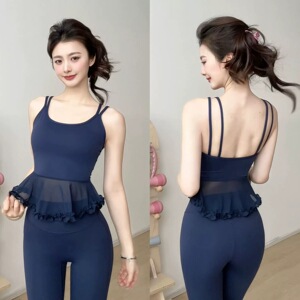 瑜伽套装固定胸垫空气感拼纱气质背心高腰提臀普拉提八分裤1855