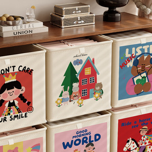 卡通卡莱克格子收纳筐家用大容量防尘布艺可折叠玩具杂物收纳神器