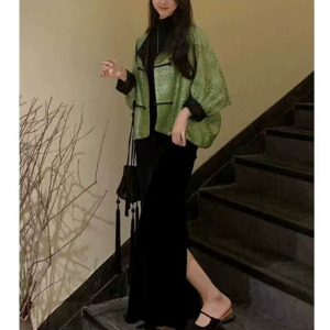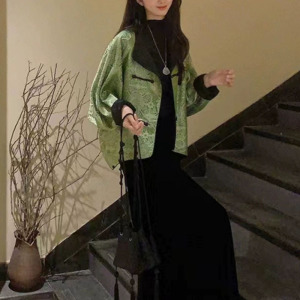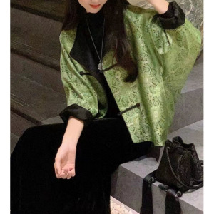 新中式唐装绿色短外套女春秋款欧货高级感中国风气质名媛开衫上衣