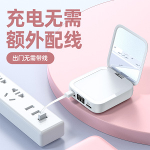 迷你化妆镜充电宝10000毫安自带线小巧便携移动电源定制logo礼品