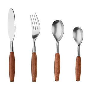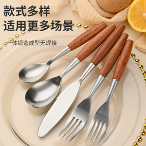 日式ins花梨木木柄304西餐不锈钢牛排刀叉勺咖啡甜品古餐具套装