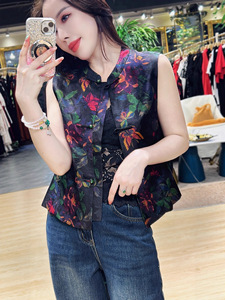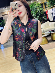 二色 新中式复古盘扣桑蚕丝香云纱马甲秋款国风减龄小众坎肩上衣
