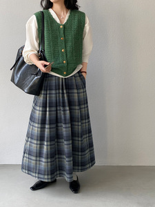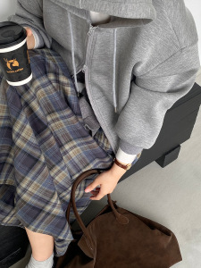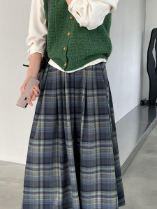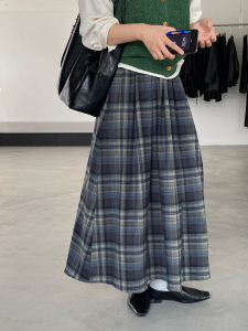 江左 格纹控 学院风经典百褶格子图案宽松长款A字裙半身裙女 6330