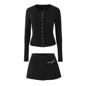 欧美时尚气质修身长袖针织衫上衣+高腰字半身裙棉基本款